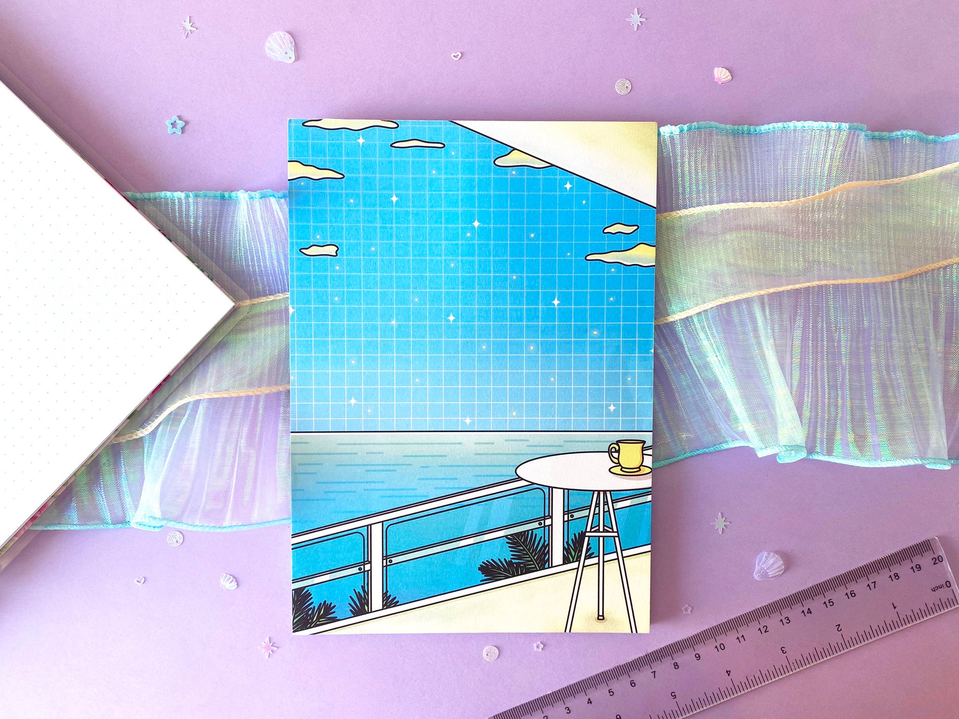 A5 Notepad | Summer Landscape Ocean view in coffee shop | Vaporwave & Dreamy Vibes