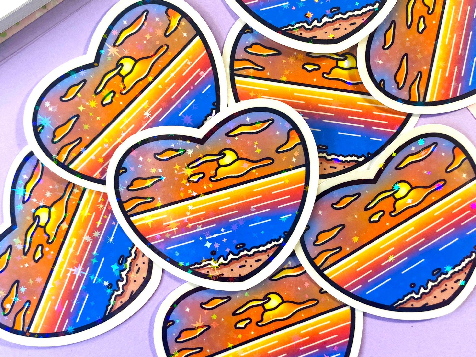 Holographic Waterproof Heart Stickers "Sunset"