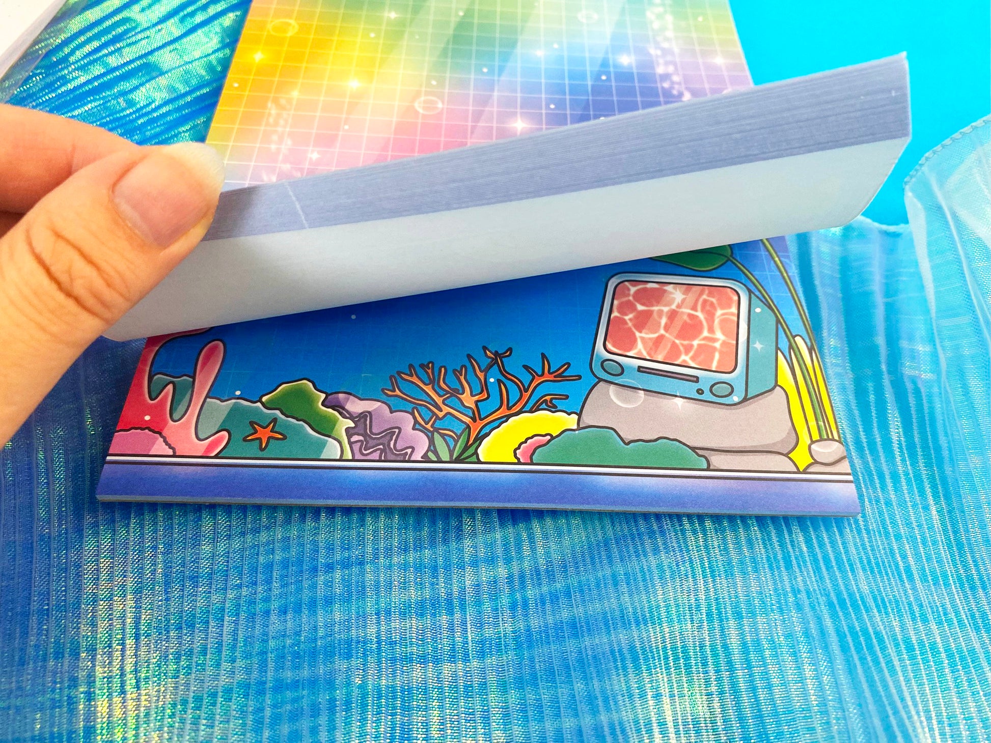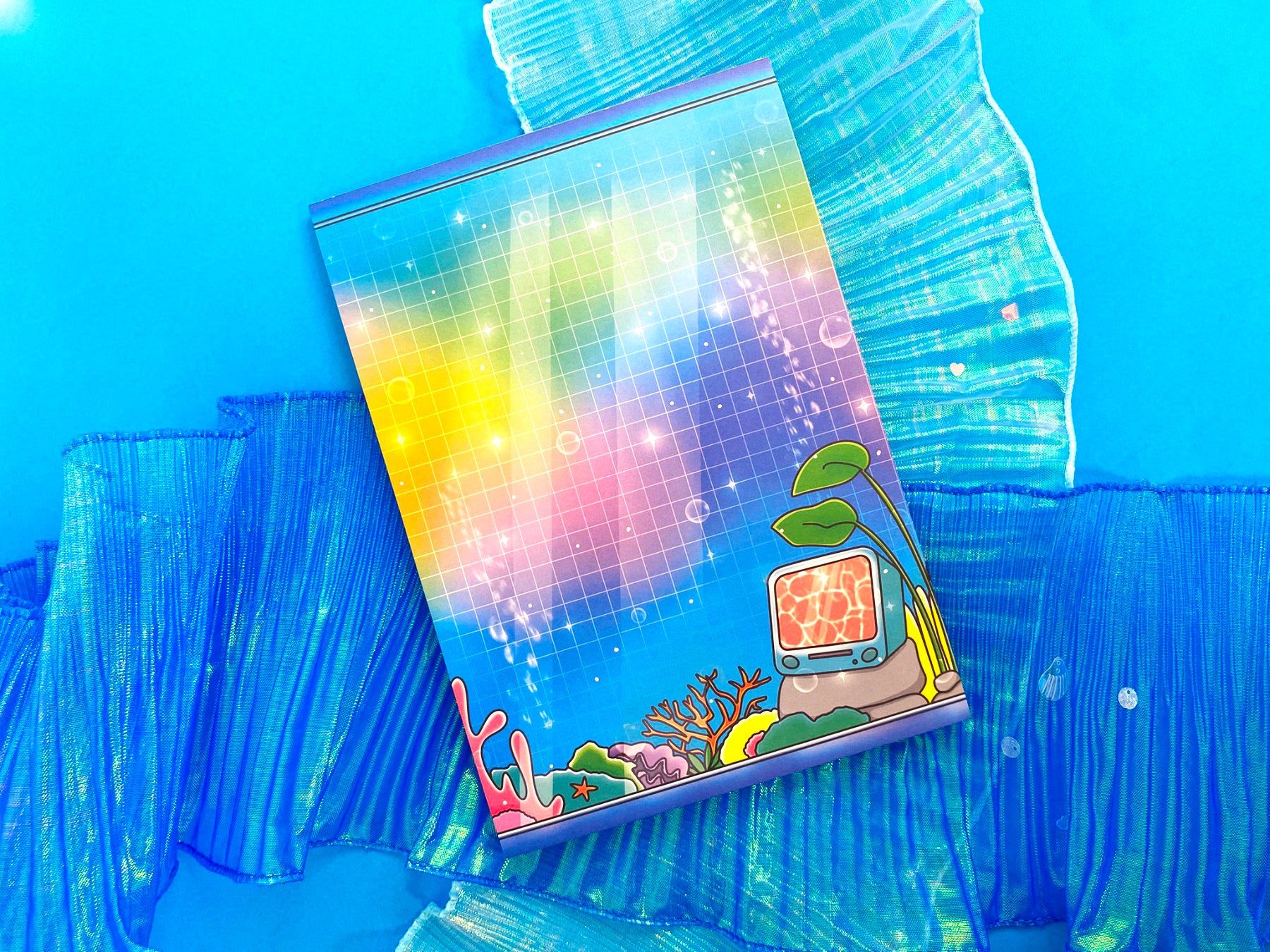 Dive into retro aquarium vibes with this Nostalgic Fish – Colorful Aquarium A5 Notepad. Inspired by vintage digital aquariums and the playful Frutiger Aqua aesthetic, this notepad blends vibrant colors with nostalgic tech details to brighten your creative routines.