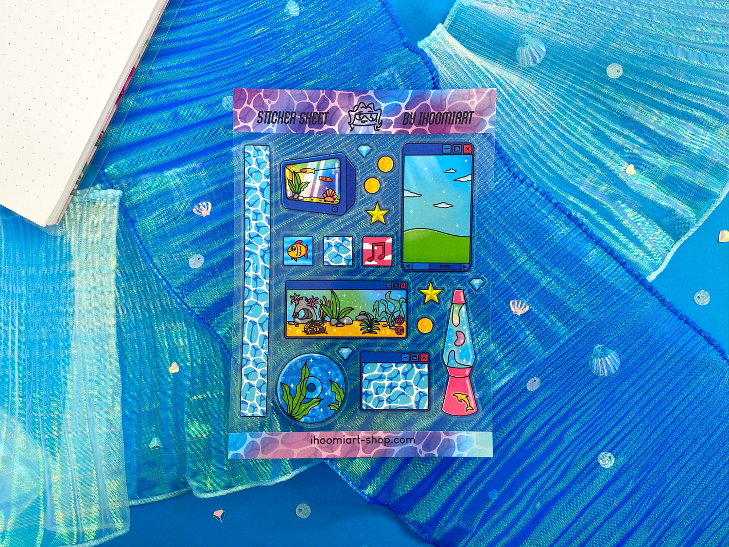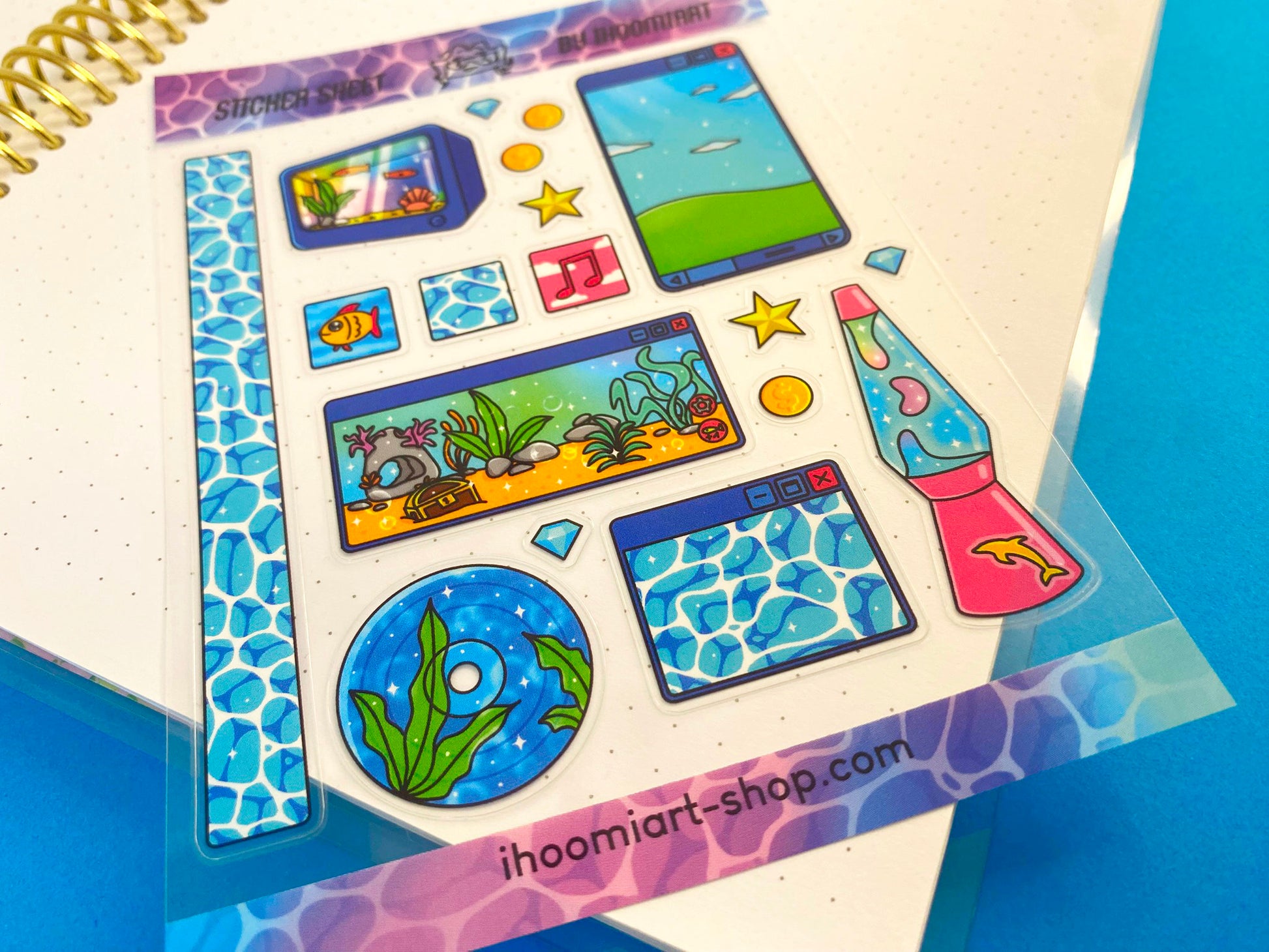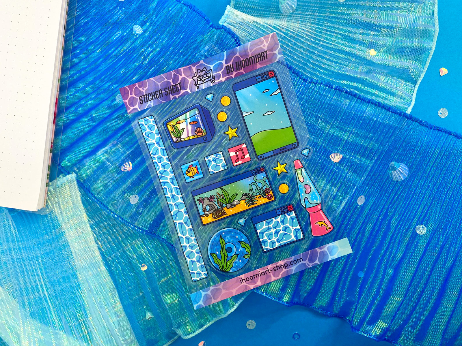 Nostalgic Fish A6 Clear Sticker Sheet - "Lost in aquatic virtual world"