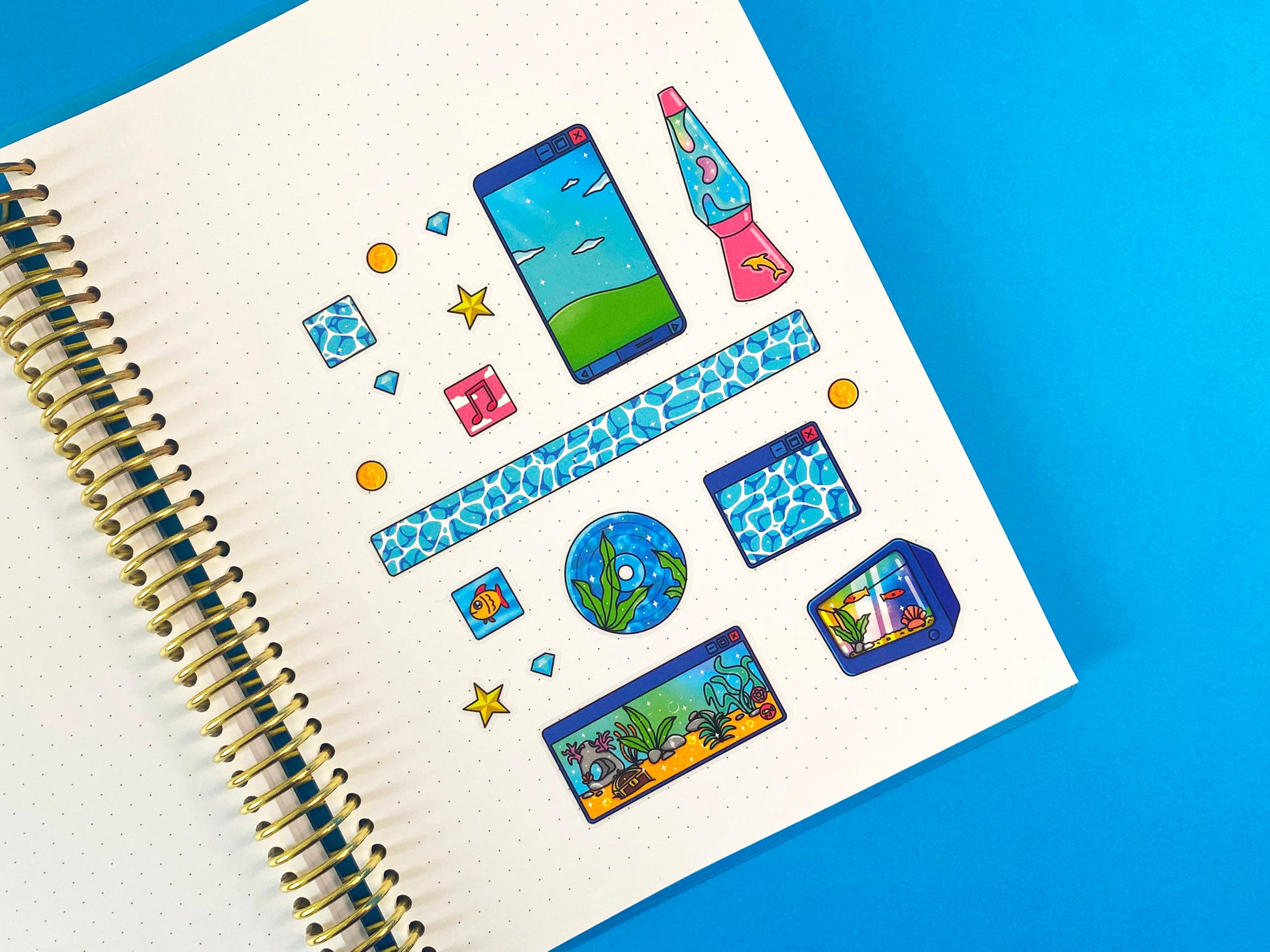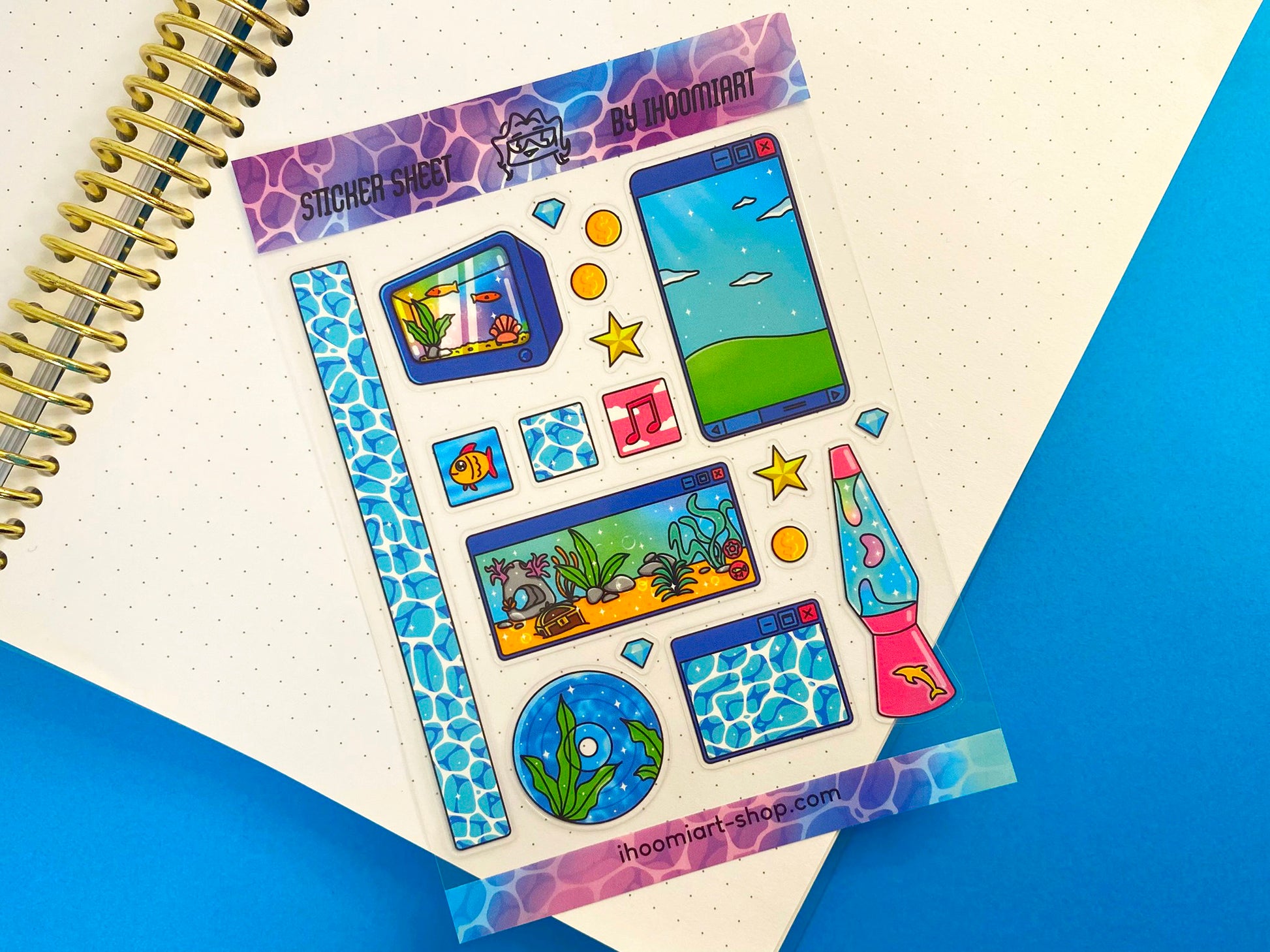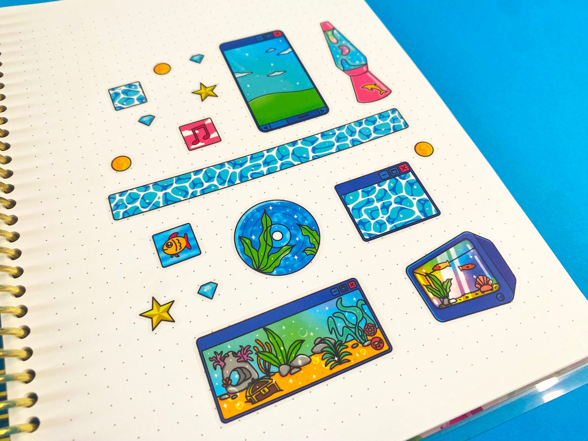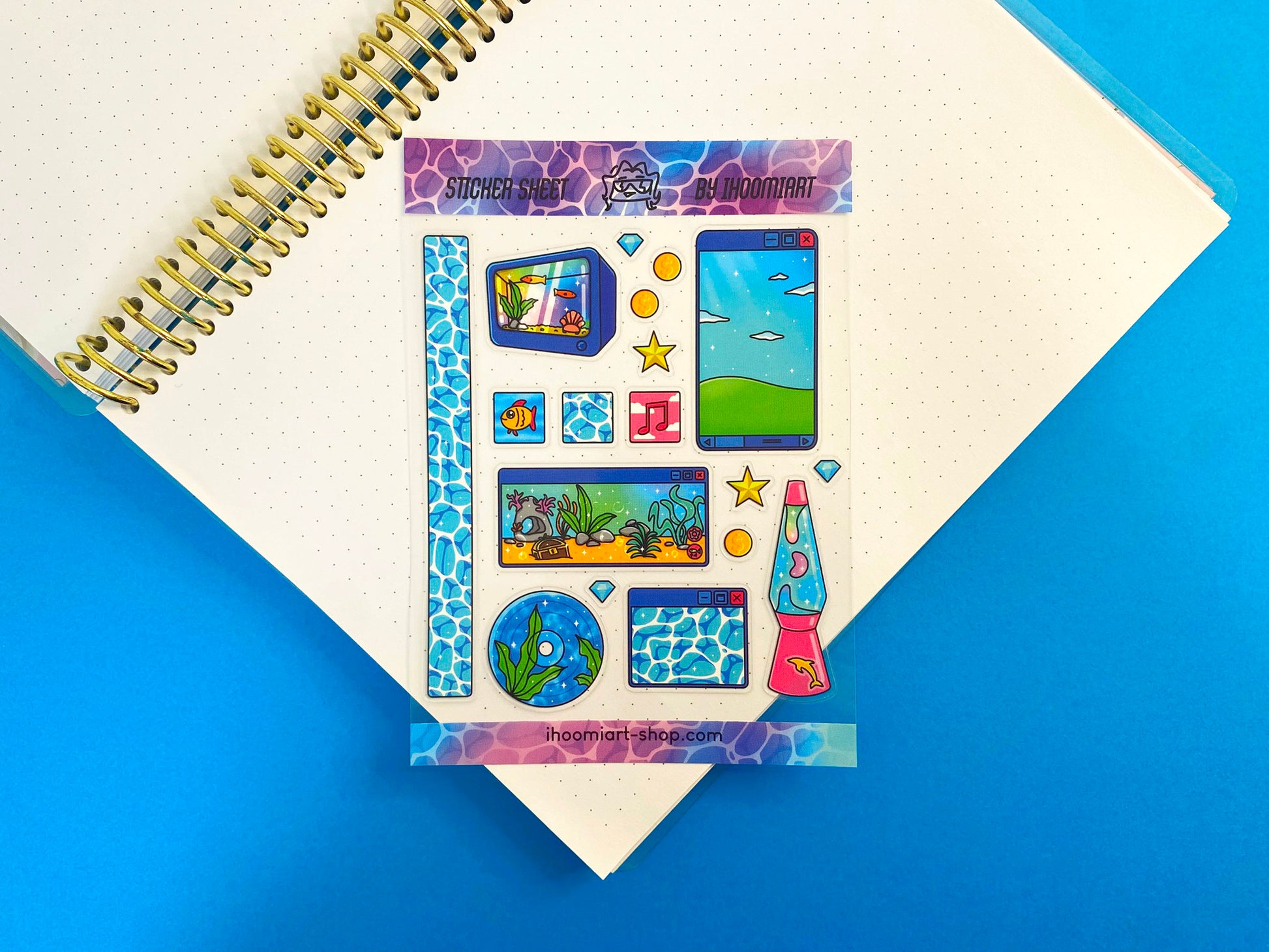 Nostalgic Fish A6 Clear Sticker Sheet - "Lost in aquatic virtual world"