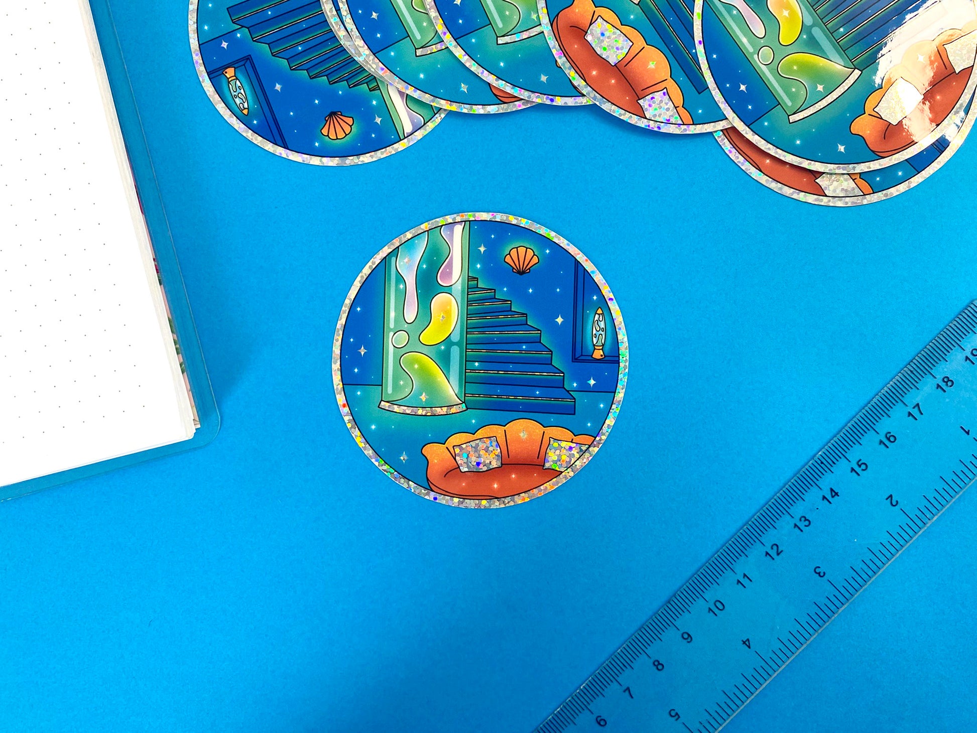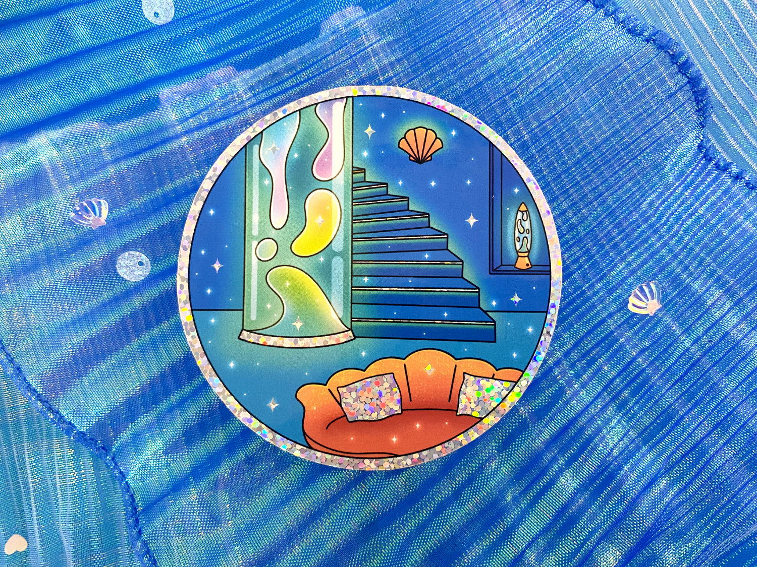 Nostalgic Fish Collection – Under the Sea Penthouse Holographic Glitters Sticker. A chilling moment in your penthouse, the lights transport you as if you're under the ocean.