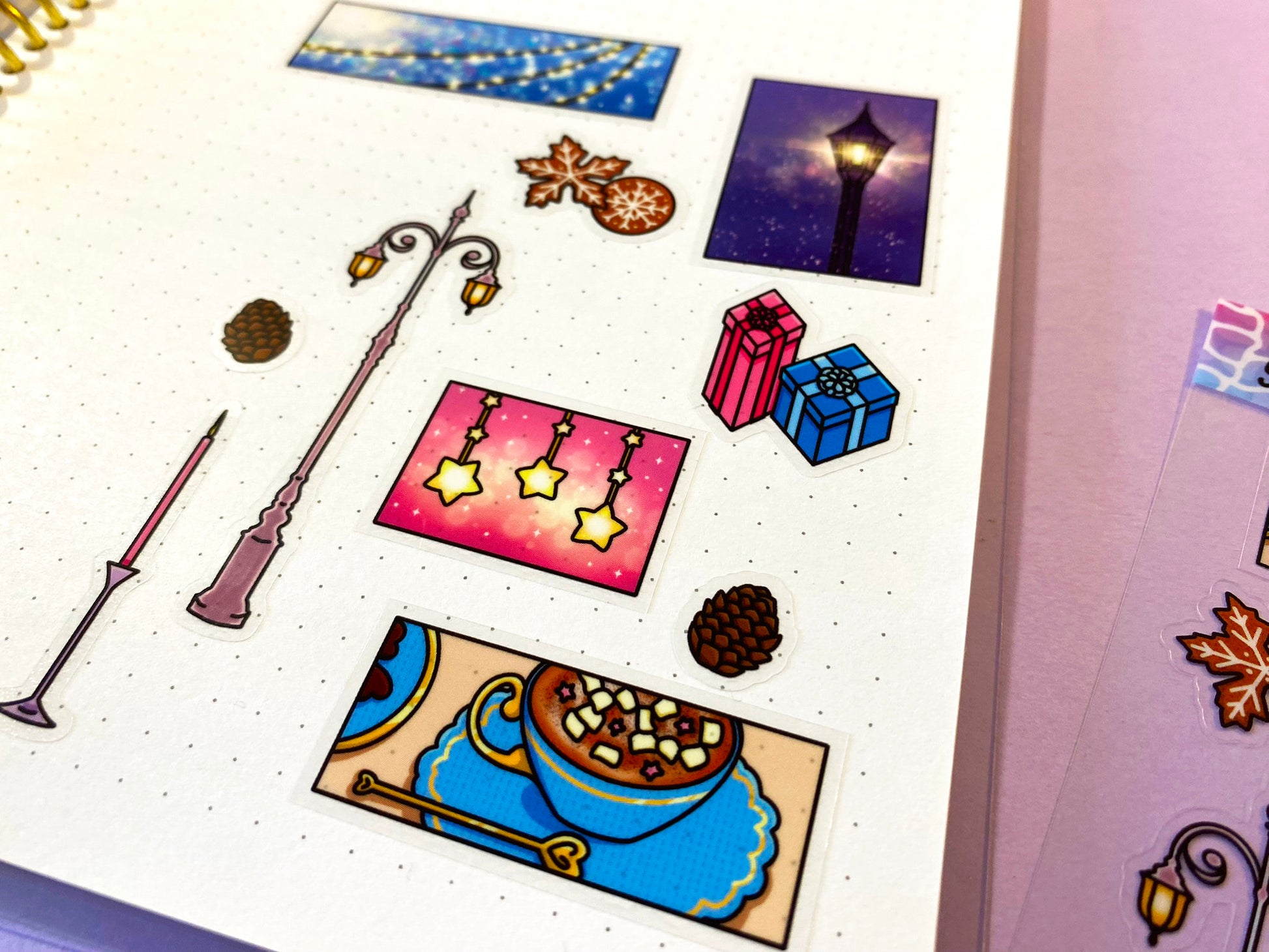 Transparent sticker sheet on the theme of Christmas and winter memories. Ideal for scrapbooking, bullet journal, journaling, notebook; etc.