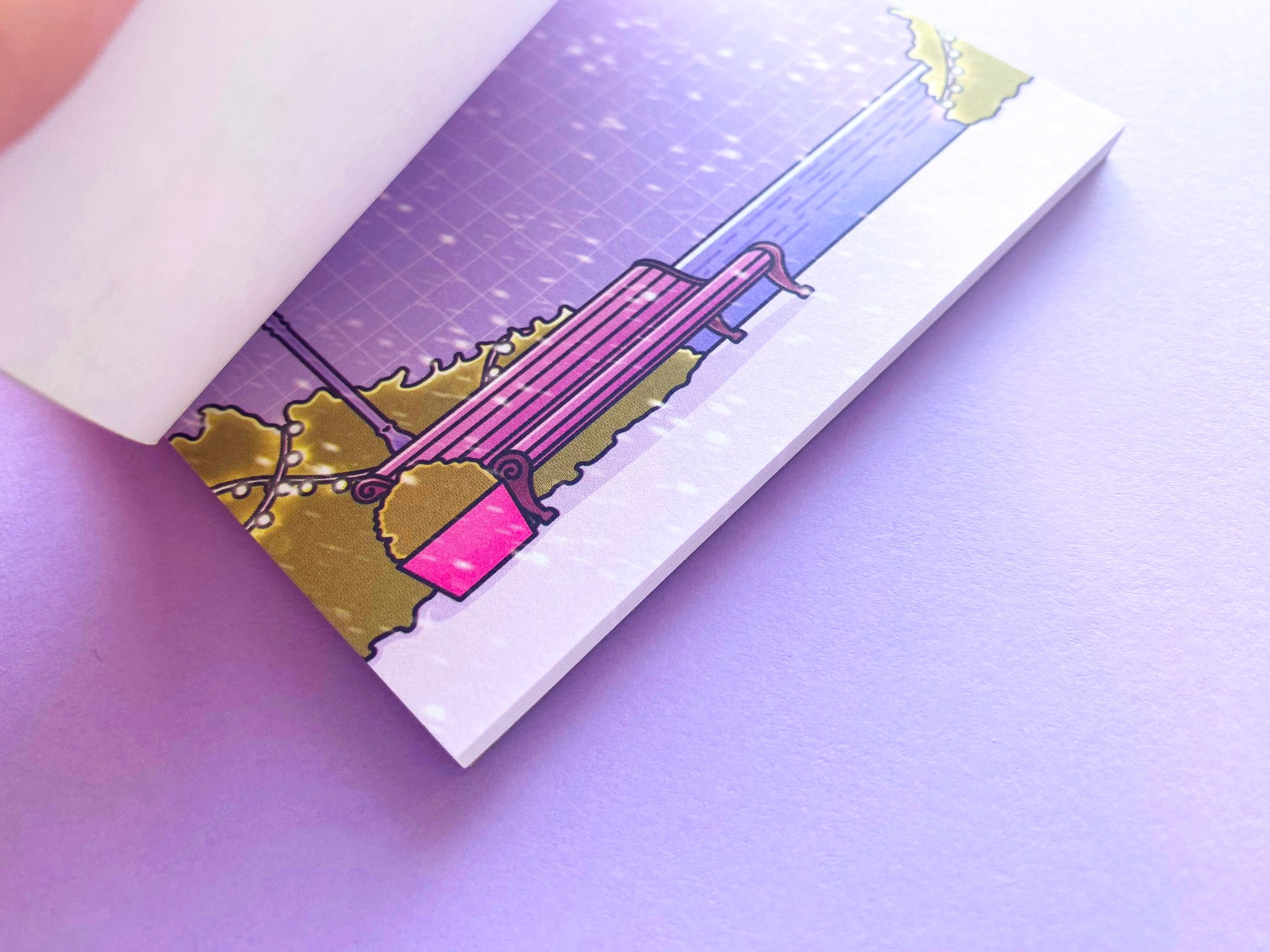 Aesthetic notepad with dreamy and vaporwave vibe for winter and christmas season. I designed this notepad with the idea of a heavenly and calming landscape in snow with a beautiful view of the ocean.This notepad is in A6 format, this pocket size is ideal to carry, for your small to do lists but can also be used for journaling.