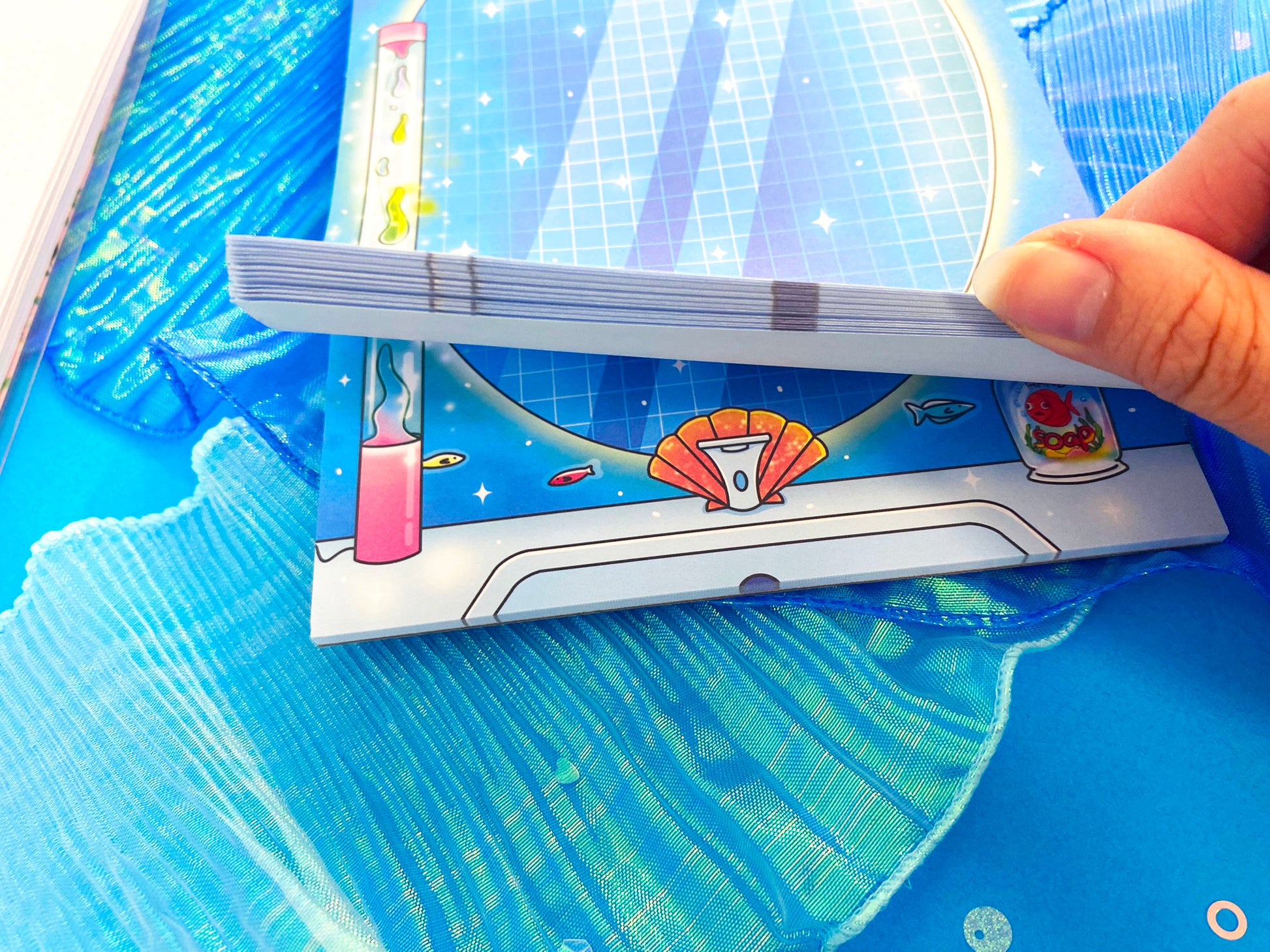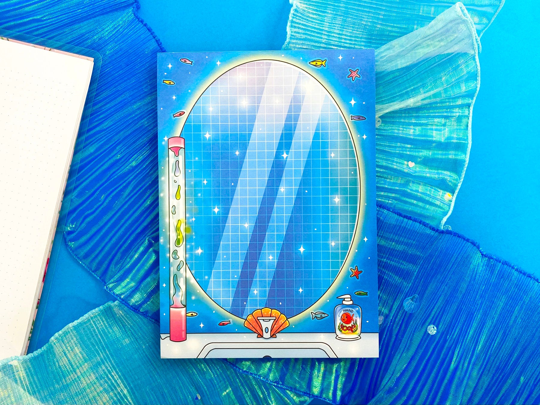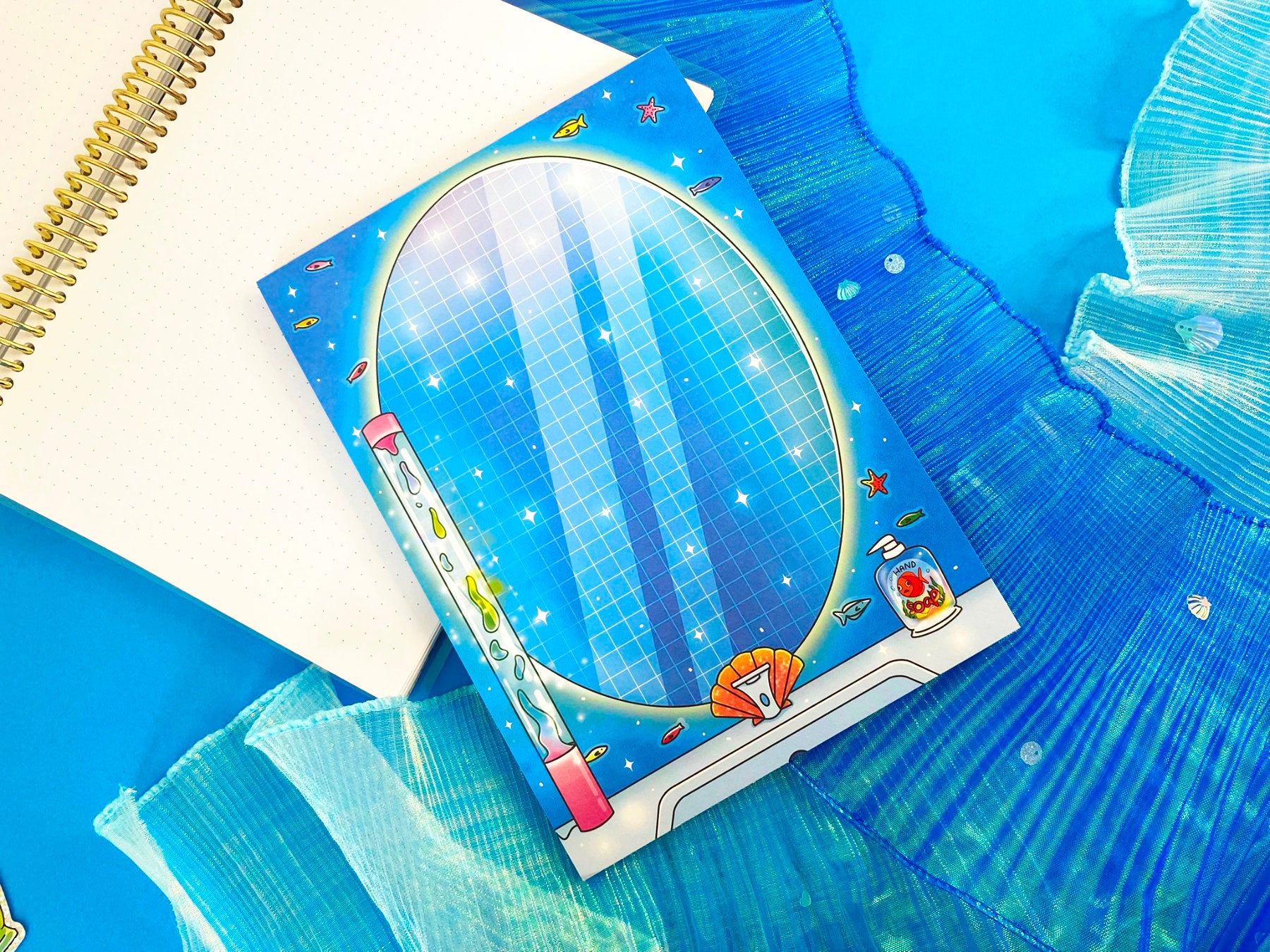 Inspired by vintage bathrooms and sea-themed decor, this notepad features a cozy yet whimsical atmosphere: