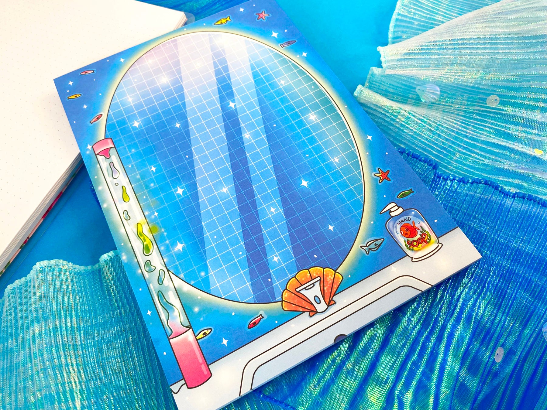 Dive into a surreal underwater bathroom with this Under the Sea Bathroom A5 Notepad – a dreamy, retro-inspired design blending everyday nostalgia with oceanic vibes. A perfect match for lovers of quirky, aesthetic stationery and creative journaling.