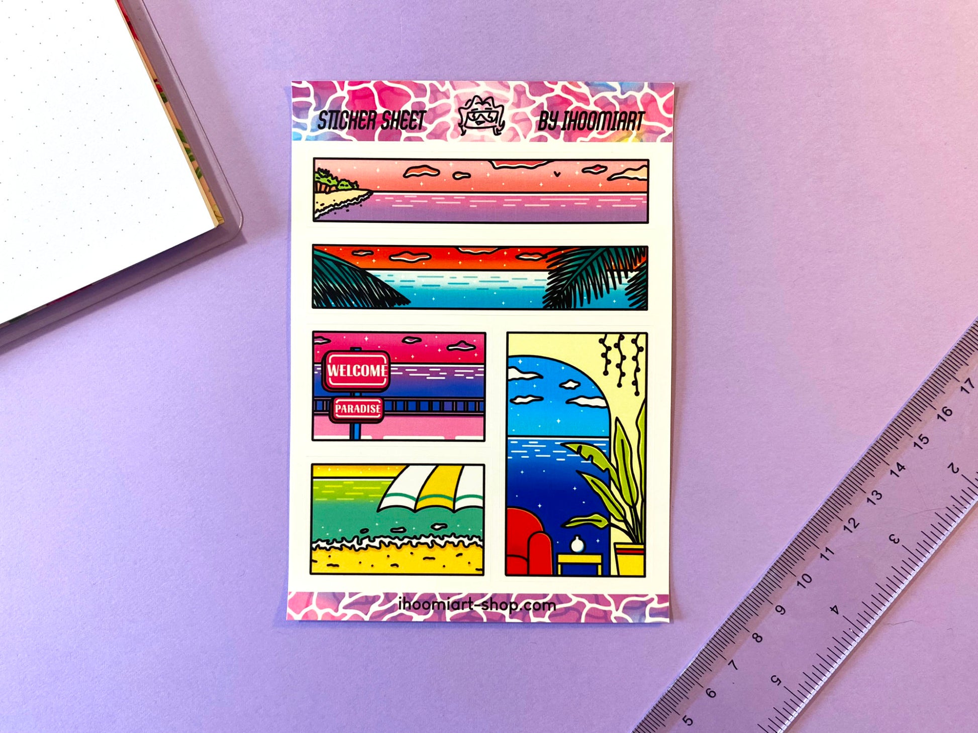 Aesthetic ocean dreamscape sticker sheet, ideal for scrapbooking, bullet journal, journaling, notebook; etc. Waterproof sticker sheet.